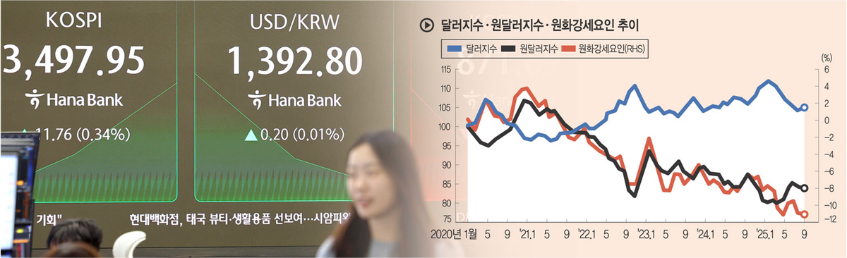 15일 서울 외환시장에서 원·달러 환율은 장중 1,497원을 기록했다. 이는 2025년 들어 가장 높은 수준이며, 1997~98년 외환위기, 2008년 금융위기 당시의 고점을 연상케 한다. 최근 글로벌 금융시장의 달러 인덱스가 다소 하락세에 접어들었음에도, 원화는 그보다 훨씬 빠른 순으로 가치가 하락하고 있다. 전문가들은 원화 자체 이탈 현상, 즉 이머징 마켓 내에서도 한국 시장에 대한 펀더멘털 우려가 커지고 있다는 점에 주목하고 있다.